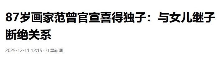 12日,87岁范曾发文老年得子,今后一家三口共度余生,顺便和继子、亲生女儿断绝了亲子关系。